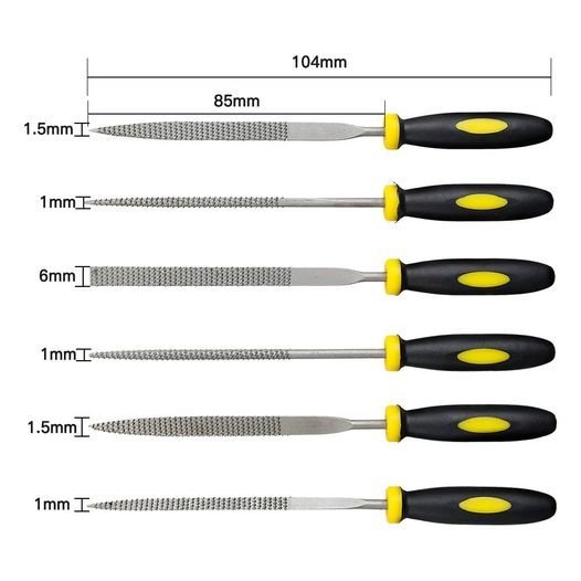 Características: 1. La hoja de Lima está hecha de acero de alta calidad con tratamiento de endurecimiento superficial, alta dureza y resistencia al desgaste. 2. El patrón dental de la lima es uniforme, alta eficiencia de molienda. 3. La mini Lima de aguja se puede pulir y pulir finamente, y es muy adecuada para el procesamiento de madera dura, desbarbado, desbaste y pulido de todo tipo de madera. 4. 6 unids/set Mini Limas de aguja pueden solucionar la mayoría de las necesidades de trabajo. Especificaciones: Material: plástico + Metal Tamaño: 140mm × 3mm Los tipos de archivos incluyen: Archivo Rectangular, archivo cuadrado, archivo ovalado, archivo medio redondo, archivo Triangular, archivo plano El paquete incluye: 6 uds. Limas de aguja