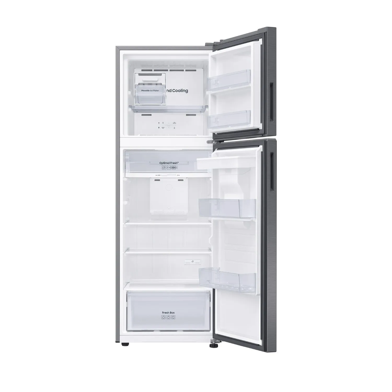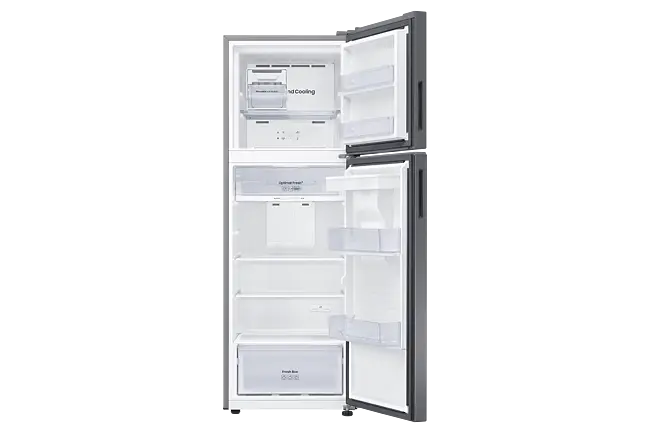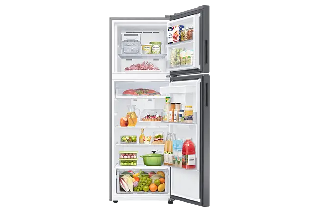 Organiza tus frutas, verduras, carnes y lácteos de forma eficiente gracias a sus compartimentos especiales y anaqueles en la puerta. Disfruta de una mejor conservación de tus alimentos y olvídate de las preocupaciones por el espacio. ¡La Refrigeradora Samsung Top Mount 341Lt RT35DG5720S9PE Silver es la solución perfecta para tu hogar!